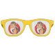 Party Shades Sunglasses with illustration of a chimpanzee in red circle, illustration by MaxiHarmony / Radka Kavalcova