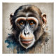 Un chimpanzé à l'aquarelle détaillée aux yeux expressifs est représenté contre un arrière - plan doux et flou. Les couleurs naturelles rehaussent l'aspect vivant.