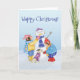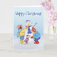 Tu veux construire un bonhomme de neige ? Ces mignons chimpanzés le font - bien qu'ils construisent un chimpanzé de neige, aidé par leur chien. Cette scène festive, sucrée et nostalgique, vous fera sourire à Noël. Le message sur le devant peut être modifié et la carte est vide à l'intérieur.