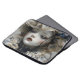 The sleeve is made of nice feeling material and seems very durable. I'm not sure how easy it'll be to clean, but the construction seems sound and the fabric is quick thick. I also like the double zipper. The printing is lovely and appears durable. The white on black contrast is nice, and the design very elegant.