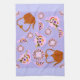 China Teapot Teacup Plate & Copper Teakettle American MoJo Kitchen Towel by Kristie Hubler with fruit and undulating leaves pattern and periwinkle background
