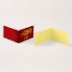 Chinese firecrackers as background for a large golden 2021 with greeting in Chinese inside the number zero + "HAPPY CHINESE NEW YEAR" + "Year of the Ox" and golden paper-cut (printed image) of an Ox. Design on horizontal folded cards (pack of 25) with small half-transparent Asian traditional pattern as background inside. Matching greeting card, holiday postcard, invitation, and more...