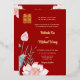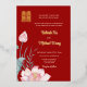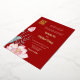 This floral wedding invitation features a watercolor painting of a lotus flower and a double happiness symbol in gold on a red background. Please check out the variation in rose gold to give this traditional Chinese wedding invitation a contemporary spin. 金箔婚礼请柬