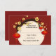 Traditional red hanging lanterns and dogwood blossoms are featured in a circular motif around a cream panel that holds your wedding party's information. The bold, red background has Chinese corner brackets. (FP). <br/><br/>The card is easy to customize with your wording, font, font colour and choice of six paper types.<br/><br/>Not exactly what you're looking for? All our products can be custom designed to meet your needs at no extra charge.<br/><br/>Simply contact us at askpixieprints@aol.com.<br/><br/>Coordinating products available: Chinese Celebrations Invitation <br/><br/>Chinese Celebrations Postage Stamp
