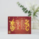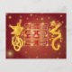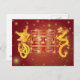 Chinese Dragon and Phoenix Mythical Animals Symbol of Union and Marriage with Calligraphy Text of Double Happiness on a Red Auspicious Sparkly Background Festive Illustration Drawing Postcard