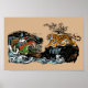 Green Chinese East Asian dragon versus tiger in the landscape with waterfall,rocks and water waves . Two spiritual creatures in Classical Feng Shui representing Yin Yang. Illustration