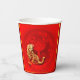 Simple golden Tiger paper-cut into a decorated circle with Chinese lantern and Fu ideogram (meaning Luck), blossoms and Chinese greeting into small circles under the tiger + "Year of the Tiger" in hand writting style + Fu ideograms as background. Design on party paper cup with Zazzle's filter for Chinese New Year of the Tiger 2022.