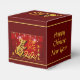 Chinese lanterns with fireworks as background with golden paper-cut of a cute rat + large golden 2020, golden Year of the Rat, greeting "Happy New year" in Chinese and golden rat ideogram. Design on classic cube favour box with dark red background + Happy Chinese new Year (to customize if you want). Matching greeting card, postcard, invitations and more... Perfect for a Happy Chinese New Year of the Rat 2020.