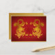 Double Chinese golden Dragon paper-cut with red old Chinese ideogram for Dragon in the centre + "Year of the Dragon" on traditional decorated pattern as background. Design on horizontal holiday postcard with golden textured paper (image printed) inside. Matching greeting card, craft products and more soon... Perfect for Chinese New Year of the Dragon or Birthday (people born in Dragon Year).