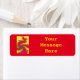This sheet of sticky food labels features a fractal pattern that looks like a Chinese Dragon. The dragon is a bright vivid shade of red and is surrounded by a fiery yellow background.