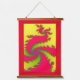 This awesome wood topped wall tapestry features a fractal pattern that looks like a Chinese Dragon. The dragon is a bright vivid shade of red and is surrounded by a fiery yellow background.