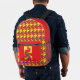 This awesome backpack features a fractal pattern that looks like a Chinese Dragon. The dragon is a bright vivid shade of red and is surrounded by a fiery yellow background.