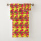 This awesome towel set includes a wash cloth, hand towel and bath towel. You can choose to purchase the whole set or select which of the towels you would like to purchase. The design features a fractal pattern that looks like a Chinese Dragon. The dragon is a bright vivid shade of red and is surrounded by a fiery yellow background.