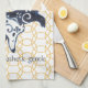 Celebrate the Year of the Goat with a minimal, modern Chinese New Year kitchen towel featuring a simple, stylized dark blue goat graphic on interlocking golden yellow circles. Three traits of this Chinese Zodiac animal are written on the front - playful, sympathetic, gentle.. There is no year specified, so it's perfect for anyone born in the Year of the Goat in any year. Whimsical, original artwork & design by Tuzi Williams.
