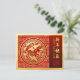 An elegant visual of a red horse with blossoms into a circle (inspired by traditional Chinese paper-cut) with gold circle (image printed) overlay a red and yellow traditional Asian pattern + graphic "HAPPY NEW YEAR" in Chinese and English and old Chinese calligraphy for "horse" on the right on gradiant red colour band. On the back are the same gradiant background (on the left) for texts to personalize: your message and return address + golden textured paper (image printed) on the right. Design on horizontal holiday postcard. You can easily personalize this Lunar New Year postcard by customizing the greeting on the back or delete for your handwritten note, type in your return address. Available similar design with golden paper cut-out of horse. Matching real foil holiday postcard.