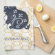 Celebrate the Year of the Pig with a minimal, modern Chinese New Year kitchen towel featuring a simple, stylized dark blue pigs graphic on interlocking golden yellow circles. Three traits of this Chinese Zodiac animal are written on the front - generous, compassionate, kind. There is no year specified, so it's perfect for anyone born in the Year of the Pig in any year. Whimsical, original artwork & design by Tuzi Williams.