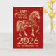 Celebrate the 2026 Year of the Fire Horse with this elegant red and gold folded greeting card. Perfect for sending warm wishes to family, friends, or business clients during Lunar New Year.