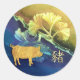 Chinese New Year Pig on Gingko Leaves Classic Round Sticker