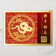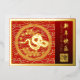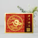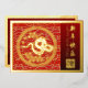 An elegant visual of a real gold foil snake with blossoms into a circle (inspired by traditional Chinese paper-cut) overlay a red and yellow traditional Asian pattern and brushed real gold foil border on the front + graphic "HAPPY NEW YEAR" in Chinese and English and old Chinese calligraphy for "snake" on the right on gradiant red colour band. On the back are the same gradiant background with golden frame (image printed) for texts to personalize. Design on horizontal real gold foil holiday flat card. You can easily personalize this Lunar New Year card by customizing the greeting on the back or delete for your handwritten note. Available similar design with red paper cut-out of snake. Matching holiday postcard (without real foil). --------- "The snake (蛇) is the sixth of the twelve-year cycle of animals which appear in the Chinese zodiac related to the Chinese calendar.