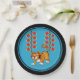 Chinese New Year plates for the year of the white tiger with a cute tiger and firecrackers, blue background, and black border.