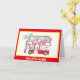 Chinese New Year card for the Year of the Rabbit, designed especially for young children, featuring a bright red double decker London bus being driven by a Rabbit, carrying all of his friends from the Chinese Zodiac on a fun New Year journey - including dragon, pig, sheep, ox, monkey, rooster, dog, rat, horse, snake and rabbit! With a bright red and gold border and a customizable greetings.
