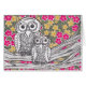 A print from an original, mixed media, owl drawing scanned on to found paper. A great card for owl lovers.