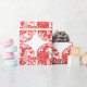 Chinese New Year of the Rooster with tradictional Chinese papercut in red on wrapping paper. Matching products.