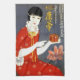 Vintage Chinese tea ad depicting a woman dressed in red holding a box of tea