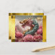 Pastel Dragon in 3D effect (Origami style) with pink peonies into a montain landscape background + golden ideogram for dragon + golden background. Design on horizontal postcard with the same golden textured paper in back. Matching greeting card. Perfect for Chinese or Vietnamese Dragon Year 2024.