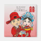 Chinese Wedding Couple: Square Magnet Pink