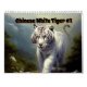 Experience the beauty and majesty of the mythological Chinese White Tiger with our stunning calendar. Each month features a breathtaking image of this magnificent creature, which is one of the Four Symbols of the Chinese constellations. It represents the west and the autumn season. With its striking appearance and powerful presence, the White Tiger is a symbol of strength and courage. Order now and bring the spirit of the White Tiger into your home all year long.
