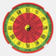 Wheel depicting the Chinese zodiac signs and the years they pertain to, in colours of red, green and yellow