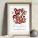 Celebrate the Year of the Dog with this beautiful and budget-friendly print. Featuring a pretty dog in a stunning lacquer red paper cut style, this personalized print is perfect for hanging on the wall or slipping into a stocking. Simply customise the name and birth year of the recipient to create a truly unique and thoughtful gift. Great for seasonal and birthday giving. Buy frame from your local store to complete the presentation or optionally purchase a frame from Zazzle at checkout for an extra cost.