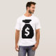 White basic t shirt wiyj a black money bag go and get that bag up work hard don’t give up go and get that Ching Ching Ching $$$