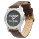 I like the illustrative watch with the lady on it. It is a great reminder that I am blessed and it has a very sturdy leather band. The colors are true and vibrant. Love the color of the Leather also. Very nice.