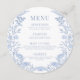 Entrez dans une élégance intemporelle avec notre carte de menu mariage ronde printemps/été bohème rustique, qui présente une délicieuse couronne fleur sauvage dans des tons bleu clair apaisants. Améliorez votre expérience culinaire mariage avec cet ajout sophistiqué, conçu pour apporter un sentiment de raffinement à votre célébration. Parfait pour les thèmes rustiques, bohèmes et mariages extérieurs.