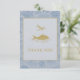 Serene and sophisticated, this Chinoiserie thank-you card captures the tranquility of a lily-covered pond in soft periwinkle and gold. The outer border features a delicate toile of lotus blossoms, lily pads, and dragonflies, framing a clean white center bordered in gold. At the heart of the design, a graceful gold koi swims beneath a hovering dragonfly — a timeless symbol of peace and renewal.