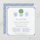 Timeless blue white and green design featuring handpainted ginger jar pottery and boxwood topiary. This is complemented by a "Greek Key" border and pattern backer. I've set the template up for a rehearsal dinner invitation but all of the text fields are customizable to your needs. You can move, delete or add text fields by entering the design tool. You can also change the contrast colour of the Greek Key border on the front and the pattern on the back (shown here as a dark blue) to any colour you like by entering the design tool (underneath the text customization area, click to "customize further") then changing the background colour on each side.