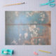 Distressed Chinoiserie is a heavily worn teal blue nature background with apple blossoms. Perfect for anything, from decoupage, collaging, or gift wrapping.