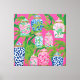 Chinoiserie jars and banana leaves on hot pink canvas print