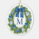 Chinoiserie Monogrammed Wreath Christmas Ceramic Ornament