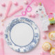 Elegant blue and white paper plate for coastal grandma, chinoiserie, or blue and white themed wedding or party.