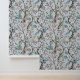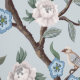 Chinoiserie Peony Flowers,Trees & Birds Light Grey Wallpaper
