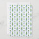 This baby shower tea party invitation has a chinoiserie design featuring five different topiaries in blue and white pots with one pink pot. The border around the invitations is a blue bamboo frame, The top has Text that says "Time for tea with the mom to be." You can edit the text to meet the needs of your event. The back has a coordinating topiary pattern.