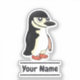 Vinyl sticker with an illustration of a chinstrap penguin; a design with customizable text template for your name.