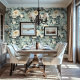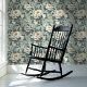 Chintz Style White Roses on Blue Floral Wallpaper