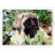Un superbe chiot mastiff de renommée mondiale posé dans les bleuets.