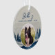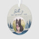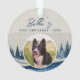 Chiot Premier Noël Forêt d'hiver Dog Photo Ornement. Paysage forestier hivernal et flocons de neige. Photo personnalisée dans un cadre rond. Ajoutez votre photo de chien, nom et année.
