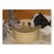 Si mignon avec deux chiots se reposant sur le bord d'une cuvette de l'eau.