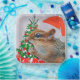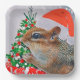 Chipmunk with Christmas Hat in Front of Tree Paper Plate